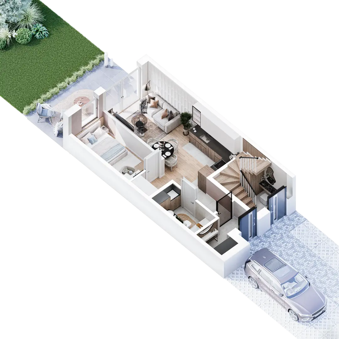Różnorodne metraże i starannie zaprojektowane układy sprawiają, że każdy odnajdzie tu przestrzeń na lata. Tworzymy Miejsce, w których estetyka spotyka się z praktycznością, a naturalne otoczenie tworzy idealne tło do spokojnego życia. Kameralny charakter osiedla, prywatne ogrody i tarasy oraz bliskość natury tworzą komfort życia codziennego.