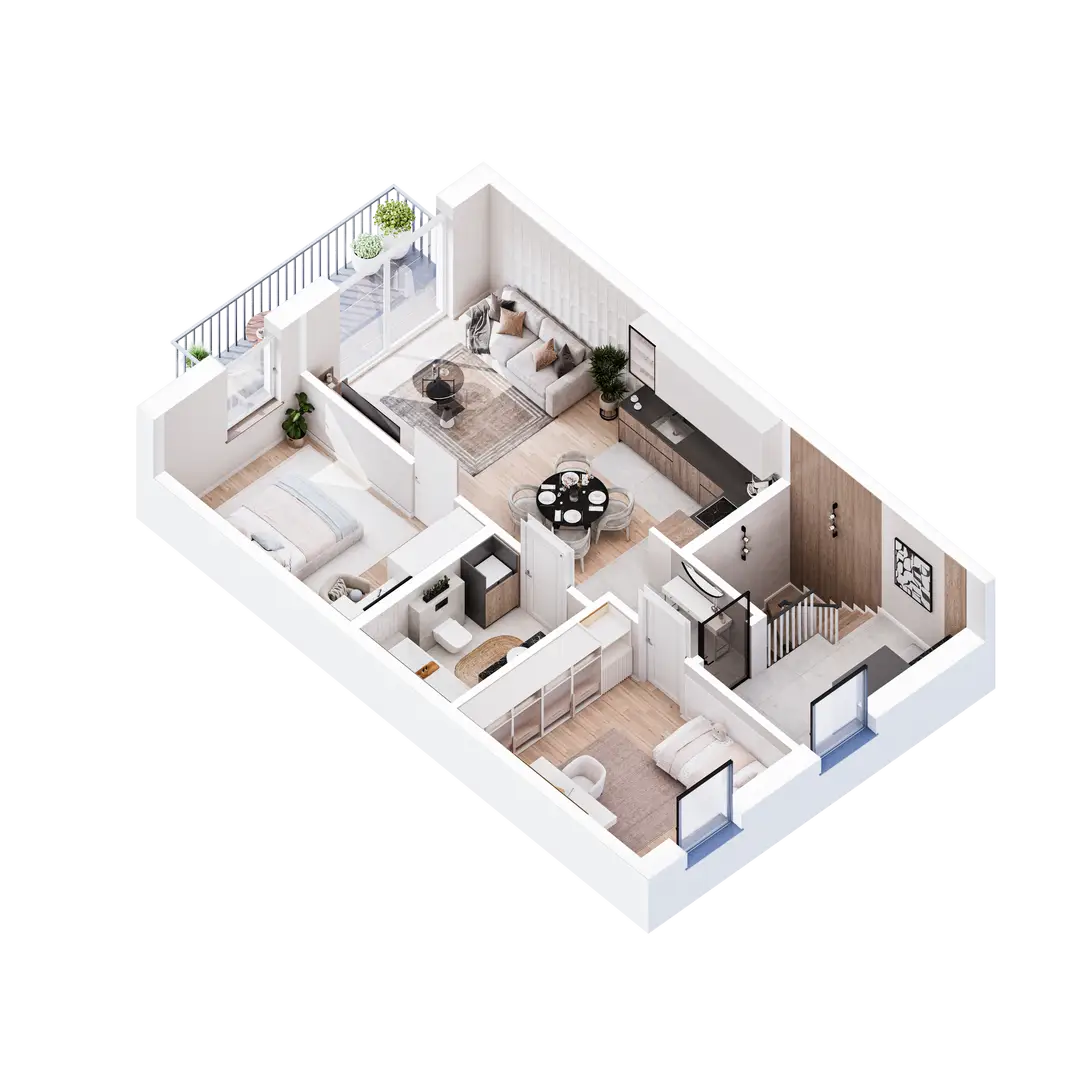 Starannie opracowany układ Mieszkań tworzy Wyjątkową elastyczność. Pozwala wybrać wnętrze idealnie dopasowane do indywidualnego stylu życia. To propozycja zarówno dla Rodzin z dziećmi potrzebujących komfortowej przestrzeni, jak i również par na ich pierwsze własne mieszkanie. Czy też dla osób pragnących spokoju i własnej zielonej przestrzeni!