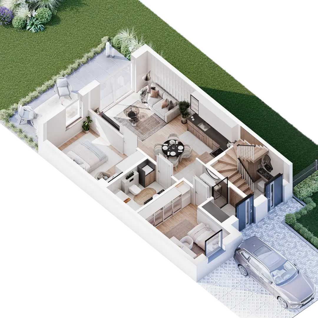 Różnorodne metraże i starannie zaprojektowane układy sprawiają, że każdy odnajdzie tu przestrzeń na lata. Tworzymy Miejsce, w których estetyka spotyka się z praktycznością, a naturalne otoczenie tworzy idealne tło do spokojnego życia. Kameralny charakter osiedla, prywatne ogrody i tarasy oraz bliskość natury tworzą komfort życia codziennego.