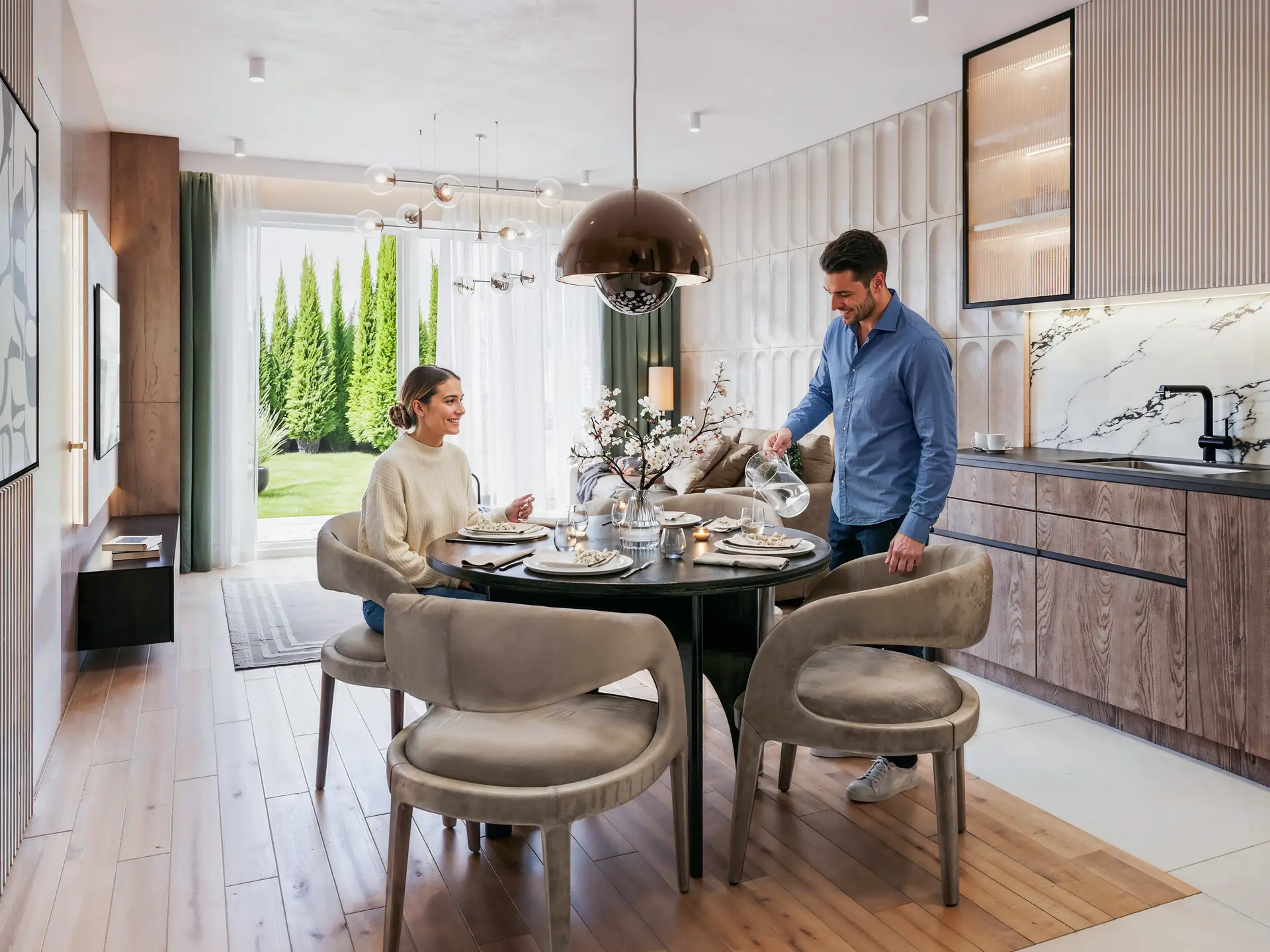 Całą Inwestycję wyróżnia wysoki standard wykończenia, który odczuwalny jest w każdym detalu. Wszystkie materiały zostały wybrane z dużą starannością, aby stworzyły komfort na lata. Nowoczesne technologie, doskonała izolacja termiczna i akustyczna, a także dbałość o estetykę bryły sprawiają, że przestrzeń jest komfortowa i trwała. Każdy element został zaprojektowany tak, by spełniać oczekiwania najbardziej wymagających Klientów. Kupując mieszkanie, wybierasz inwestycję pewną, solidną i zaprojektowaną tak, aby zachwycała dziś i przez długie lata.